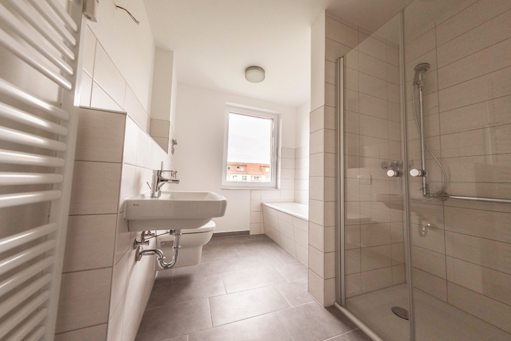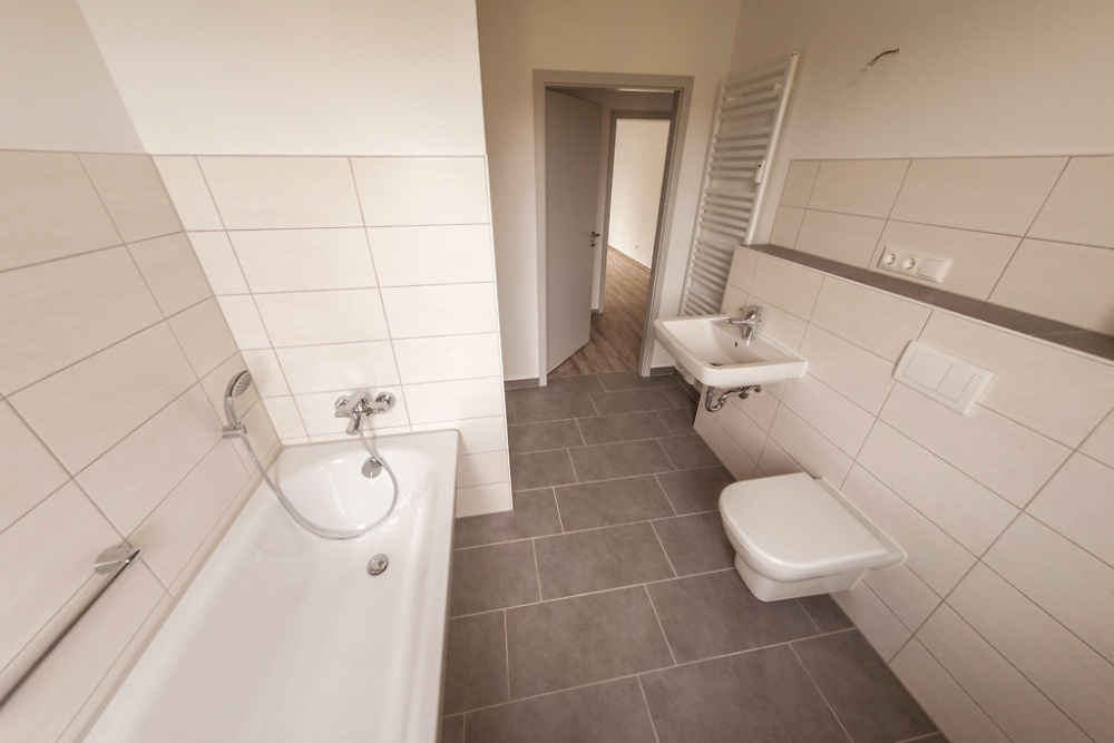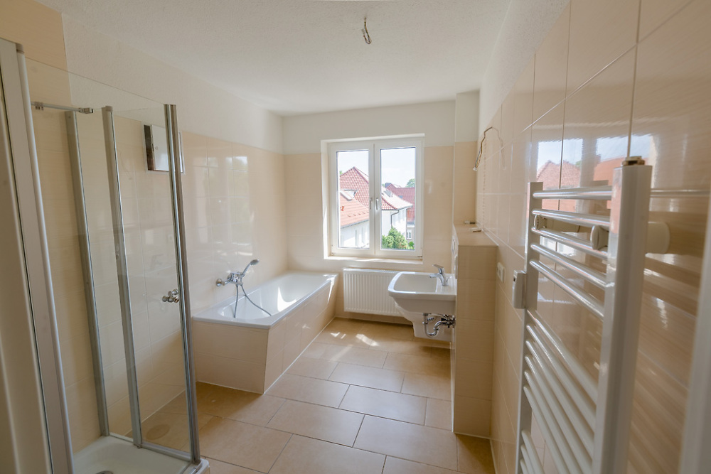 Auch in den Wohnungen wurde in der Vergangenheit viel in Richtung Wohnkomfort getan. So ist der Großteil unseres Wohnungsbestandes modernisiert. Alle unsere Wohnungen werden komplett renoviert und bezugsfertig übergeben. Geflieste Bäder und Küchen gehören genauso zum Standard wie die Austattung der Bäder mit einer Badewanne bzw. einer Dusche.
